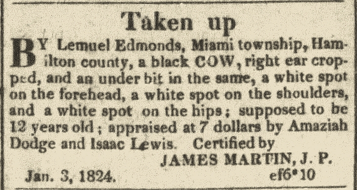 Advertisement in the Liberty Hall & Cincinnati Gazette, 16 January 1824, p. 4,; the ad mentions both Isaac Lewis and Amaziah Dodge (Newspaper Archive, accessed 30 Oct 2021)
